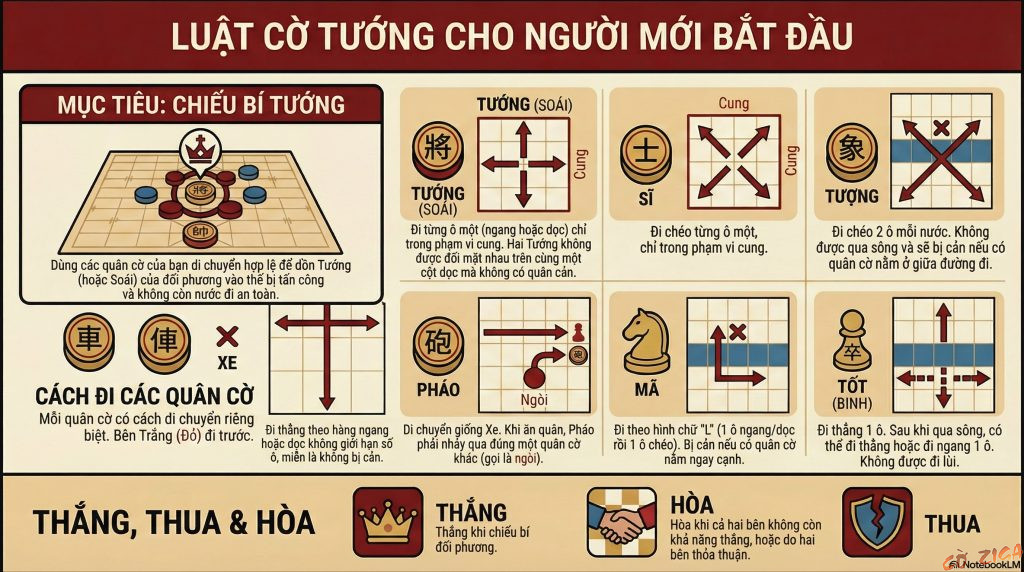 Chi tiết xin hãy tham khảo tài liệu PDF Luật Cờ Tướng chính thức do Liên đoàn Cờ Việt Nam ban hành.